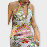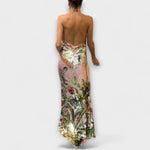 Ayla - Kvetinový vzor bezrukávové maxi šaty s otvoreným chrbtom
