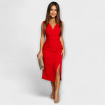 - Elegantná príťažlivosť: V-výstrih a vkusný rozparok vytvárajú dokonalú rovnováhu medzi rafinovanosťou a zvodnosťou.