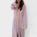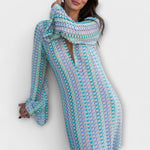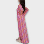 Ponorte sa do uvoľneného luxusu našich splývavých maxi šiat – nevyhnutný kúsok pre štýlové dovolenkové chvíle. Vyrobené z ľahkého materiálu, ponúkajú voľný strih, ktorý dokonale spája pohodlie a rafinovanosť. Hlboký V-výstrih a dlhé rukávy vytvárajú ženskú siluetu, zatiaľ čo dĺžka po členky zabezpečuje elegantný vzhľad – či už na pláži alebo pri večeri.