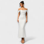 Ione - Šaty Bodycon s odhalenými ramenami a riasením