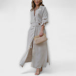 Voľný dizajn s ženským V-výstrihom a elegantnou maxi dĺžkou zabezpečuje príjemný pocit nosenia, zatiaľ čo priedušné ľanové vlákno je ideálne na horúce dni. Či už pri mori, na večeri vonku alebo na prechádzke mestom – tieto šaty sa prispôsobia tvojmu životu.