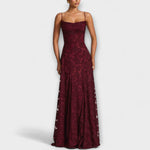 Kairi - Štýlové kvetinové čipkované maxi šaty so spaghetti ramienkami