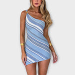 Kira - Trendy Jedno-ramenné Pletené Mini Šaty