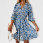 Kvetinové šaty s balónovými rukávmi pre ženy