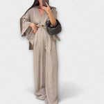 Jacqueline - Ležérny top s V-výstrihom a nohavicový set