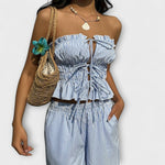 Strih: Vysoký pás, bez ramienok: Vysoký strih bez ramienok zvýrazňuje postavu a ponúka moderný vzhľad. -